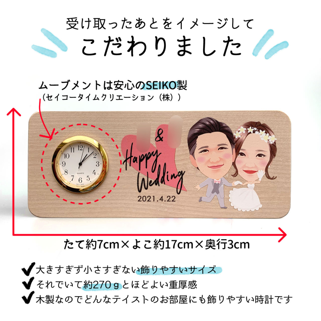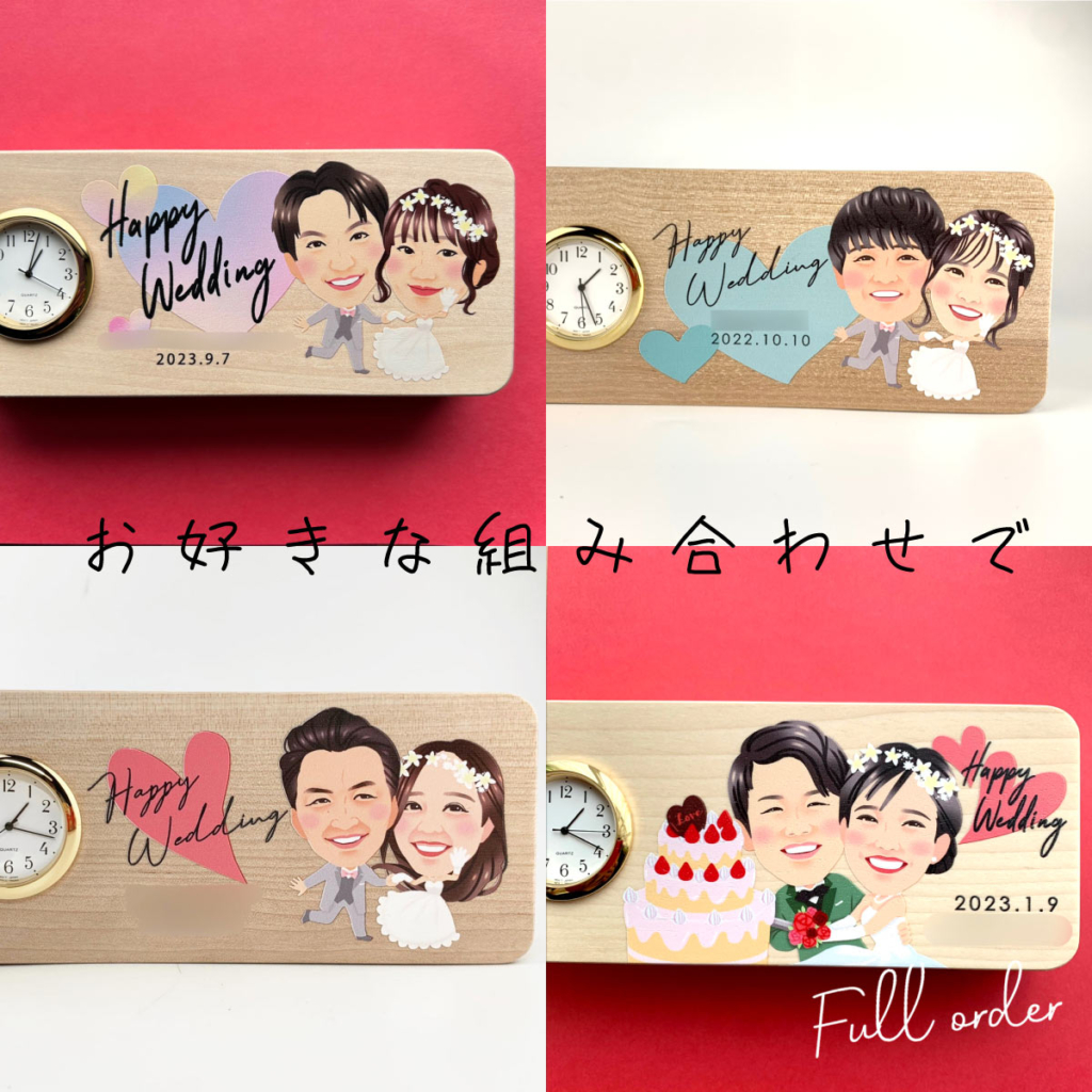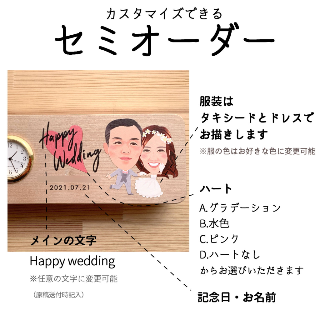 Happywedding置時計(似顔絵バージョン)